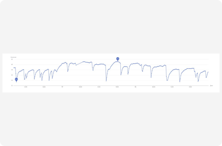 Температура в диапазоне 20–60°С, точность ±0,06°С